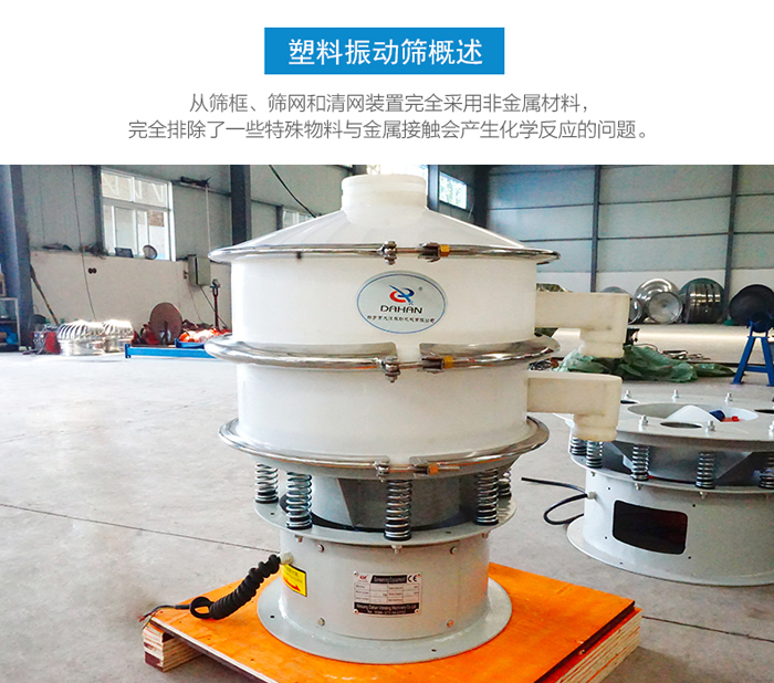 塑料振動篩主要采用的是pp塑料材質制作而成,該材質具有:抗氧化,抗腐蝕,無化學反應的特征。