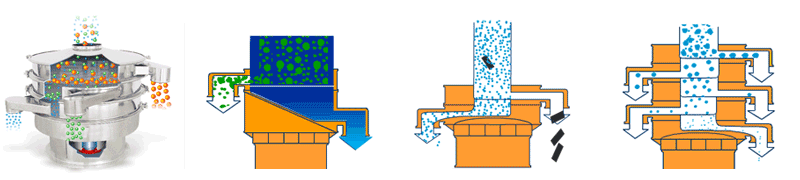 應(yīng)用 要用于物料原料的篩分和成品的最終生產(chǎn)檢驗,可以去除產(chǎn)品中的結(jié)塊和污染物,一次操作最多可提供5級分級。 適合高粘性、高靜電細(xì)粉,篩分精度可以提高80%以上,產(chǎn)量提高2-5倍。 模擬人工篩分的動作,產(chǎn)生了水平和投擲的三維滾動運動,適用于500目以內(nèi)的細(xì)粒狀物料,篩分精度提高了90-95%,產(chǎn)量是圓形振動篩的5-10倍。 適合一般的粗略篩分或除雜,的進、出料口設(shè)計在同一垂直方向上,這樣會加快物料的排料速度,處理量是普通圓形振動篩的2-5倍。 經(jīng)常用在液體過濾行業(yè),可去除液體或懸浮物中存在的不需要的顆粒,當(dāng)然也是可以作為粉末除雜。可用在處理量較小的工廠或小型作坊。